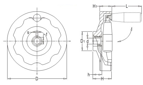 JS.101001 內(nèi)波紋手輪 顏色:亮光黑 材質(zhì):酚醛樹脂(膠木) 用途:適用于各類機械裝備的操作調(diào)節(jié) 特性:光澤感強,外形美觀,手柄可折疊。耐高溫、溶劑、機油及其他化學(xué)試劑。鋼制鐵芯表面處理防銹能力強。標(biāo)準(zhǔn)化使用,安裝簡便