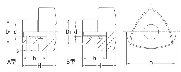 JS.102004 三棱把手 顏色:亮光黑 材質:酚醛樹脂(膠木) 用途:適用于各類機械裝備、五金工具、舞臺燈光設備等行業(yè) 特性:光澤感強、外形美觀、機械強度高、堅固耐用、標準化使用、安裝簡便