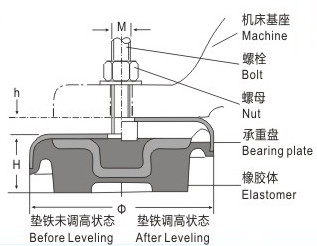 JS.108001 S78-10減震墊鐵 顏色:黃色 材質(zhì):鋼、橡膠 用途:適用于各類機械設(shè)備的水平調(diào)節(jié)和減弱機器自身的震動